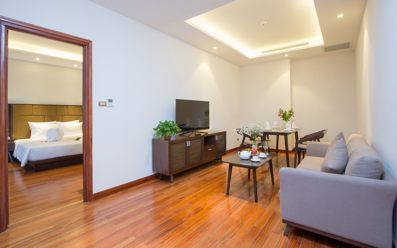 Không gian:Thiết kế hiện đại, tinh tế, tạo cảm giác thoải mái và ấm cúng.Có phòng khách riêng và phòng bếp.